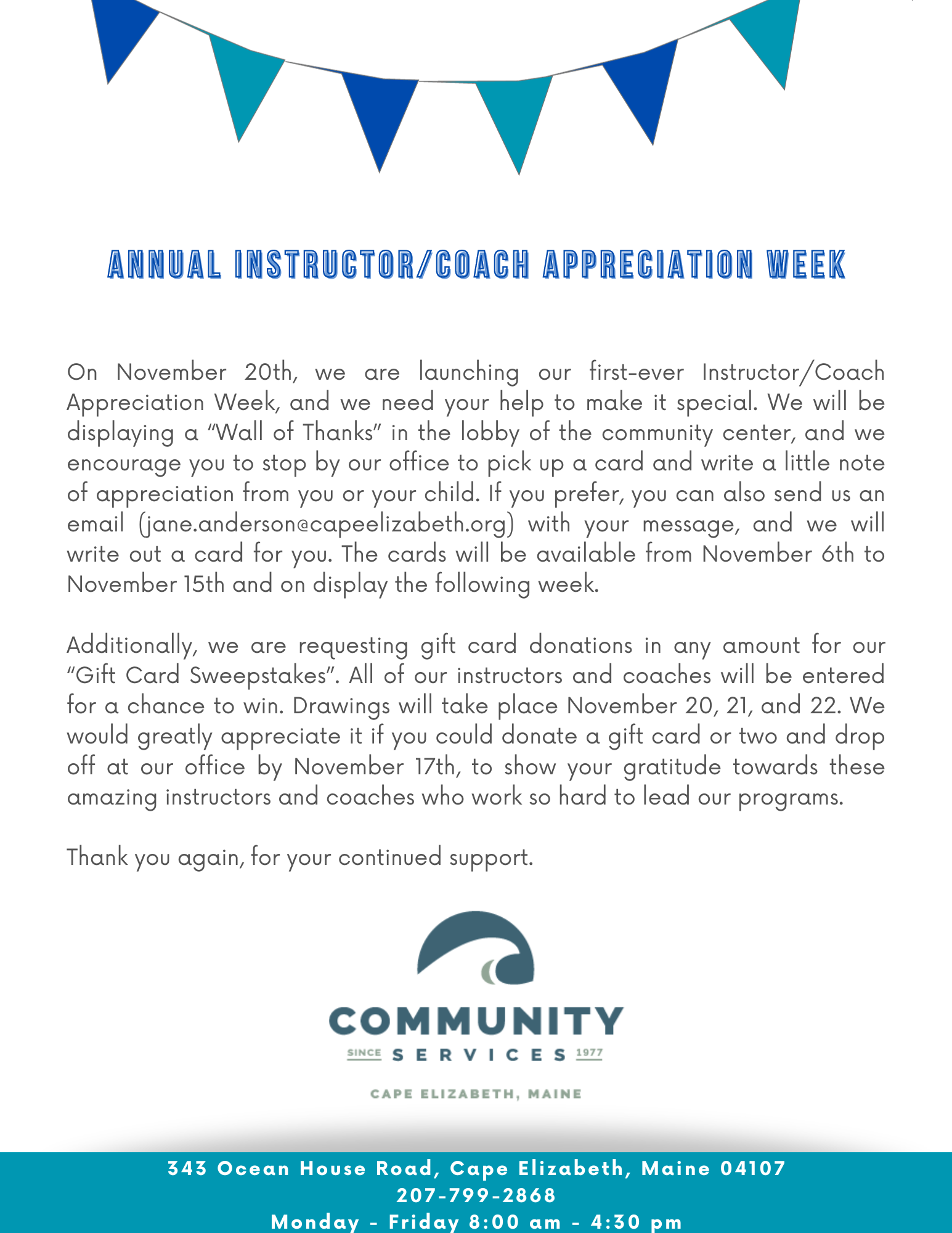 On November 20th, we are launching our first-ever InstructorCoach Appreciation Week, and we need your help to make it special. We will be displaying a “Wall of Thanks” in the lobby
